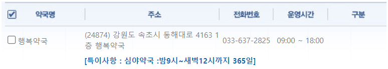 강원도 속초지역 일요일 문을 연 약국을 찾기 어렵지 않으셨나요?