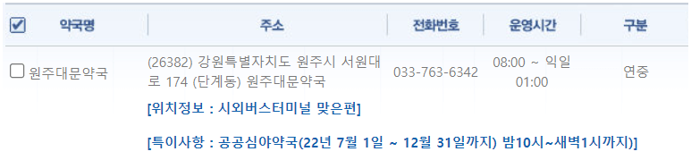 강원도 원주 심야약국