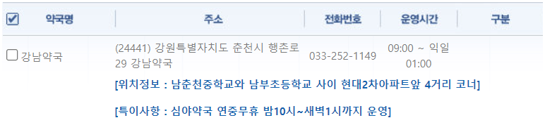 강원도 춘천지역 일요일 문을 연 약국을 찾기 어렵지 않으셨나요?