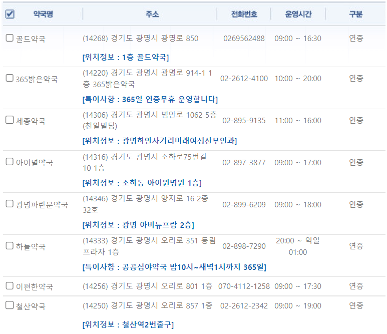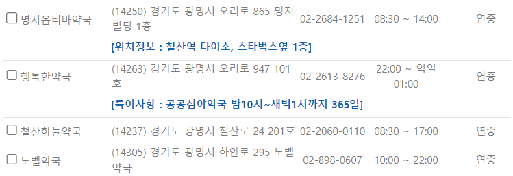 경기도 광명 지역 일요일 문을 연 약국을 찾기 어렵지 않으셨나요?