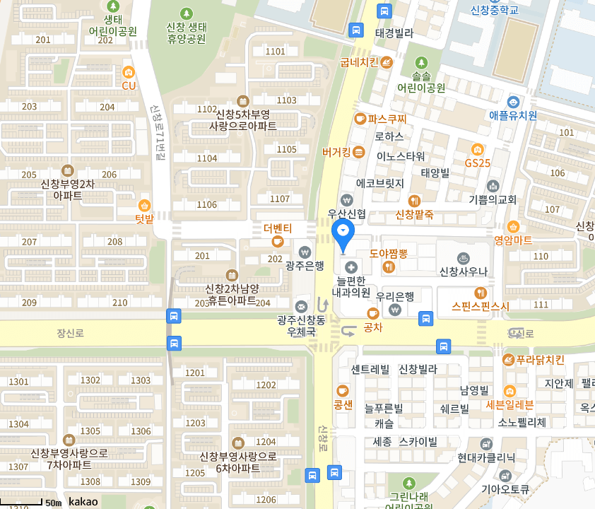 | 봄봄약국 | 광주광역시 광산구 월계로 223-8 단지내 상가 114호 | 062-447-1637 | 08:30 ~ 20:00 |