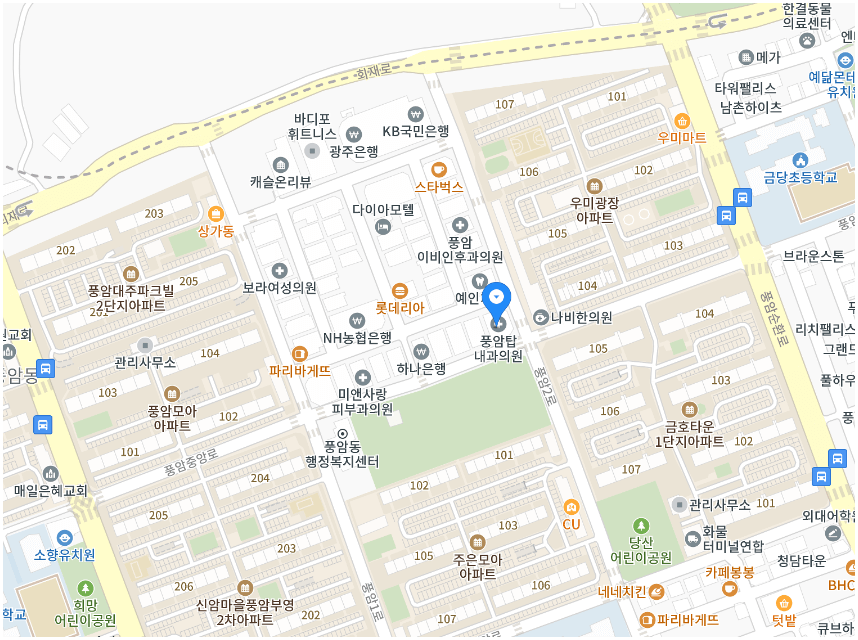 | 메디팜큰사랑약국 | 광주광역시 서구 풍암중앙로 55 | 062-682-8875 | 08:30 ~ 22:00 |