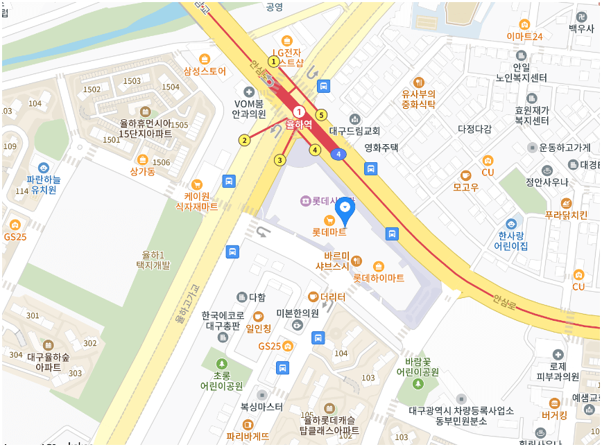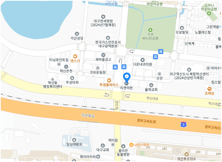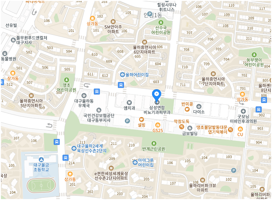 | 만복약국 | 대구광역시 동구 안심로 16길 47 5층 | 053-961-3425 | 08:30 ~ 21:00 |