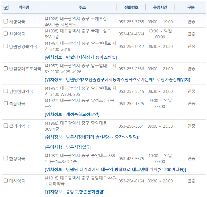 대구 중구 연중무휴 약국