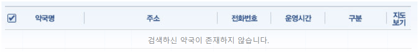 | 약국명 | 주소 | 전화번호 | 운영시간 |