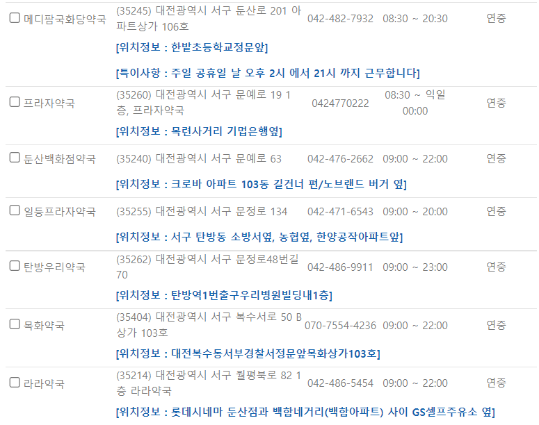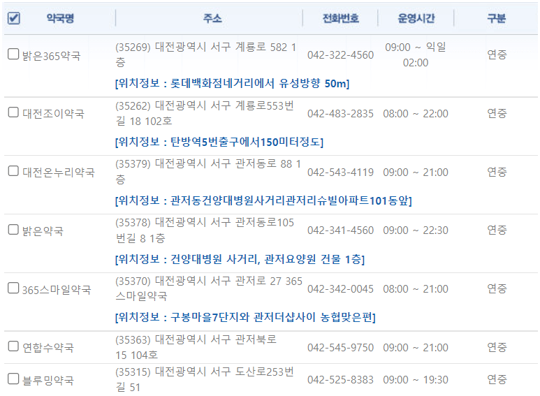 대전 서구 연중무휴 약국