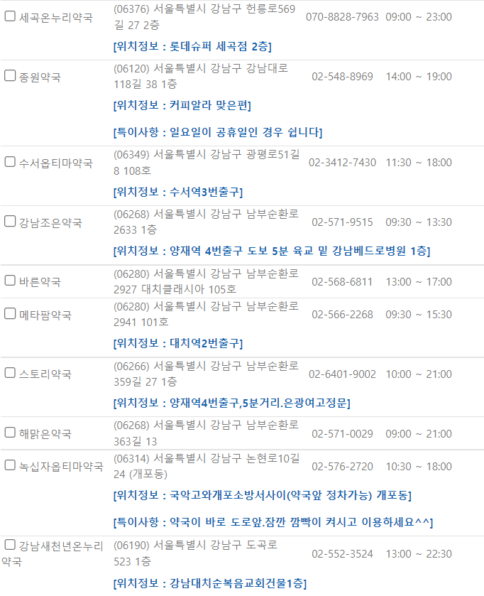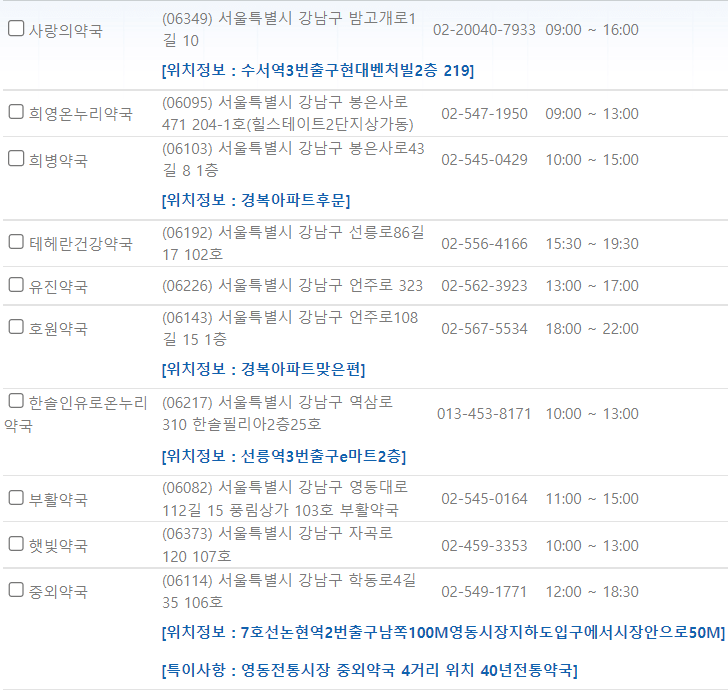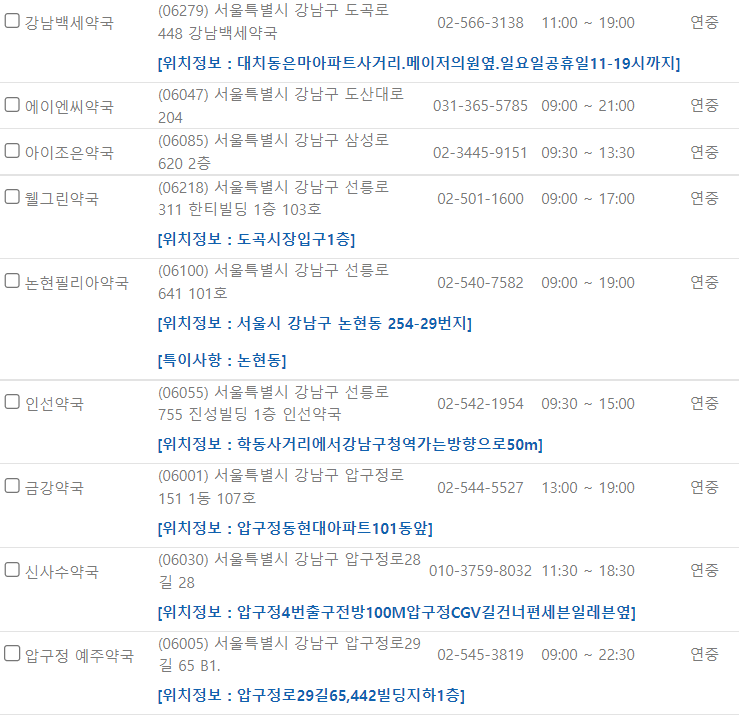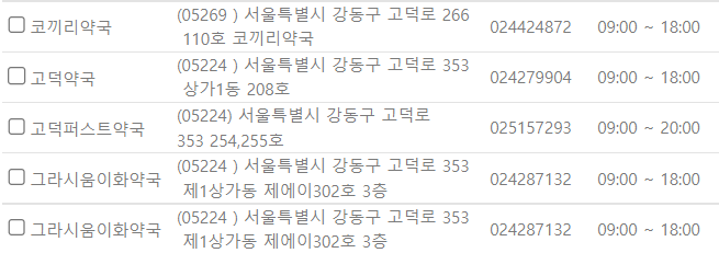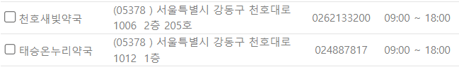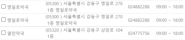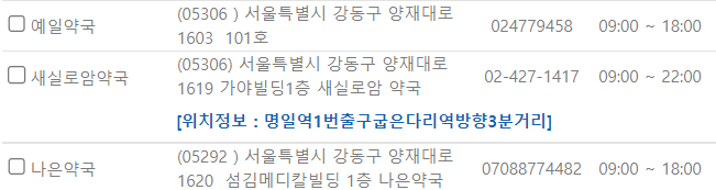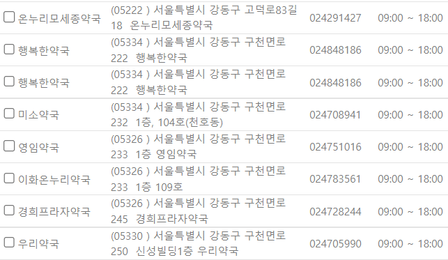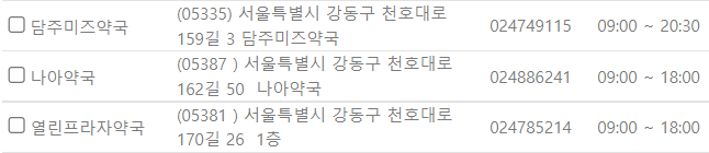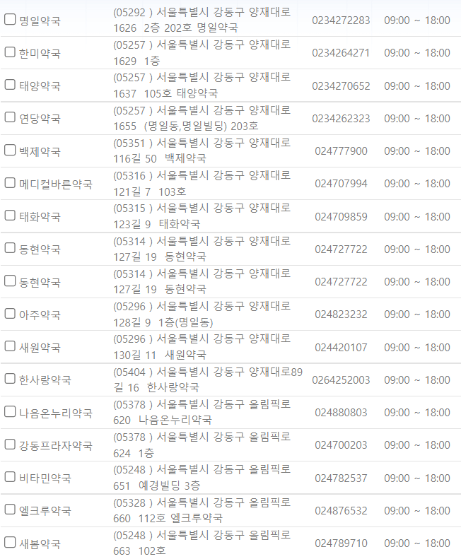 제가 미리 서울 강동구 일요일에 영업하는 약국을 찾아보았습니다. ⬇️아래 사진을⬇️ 참고해 주시기 바랍니다.