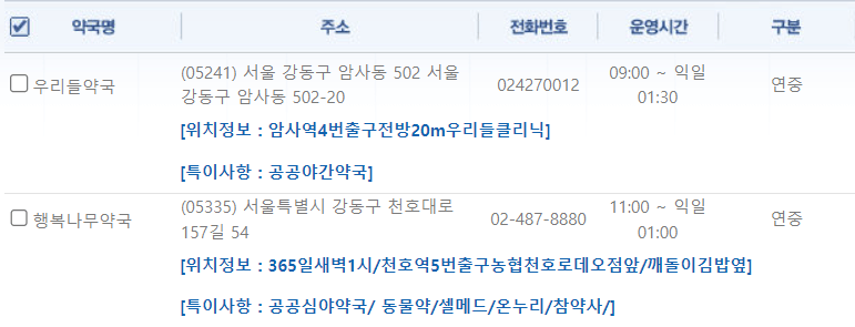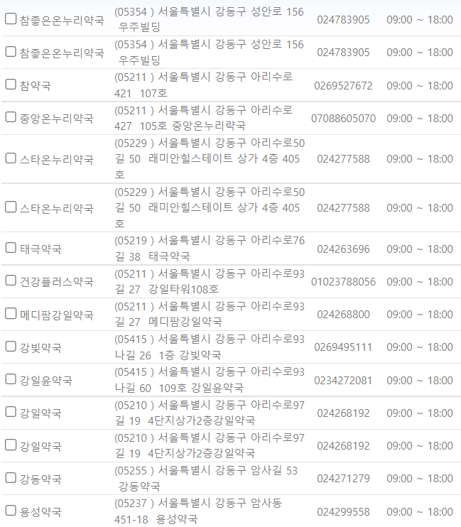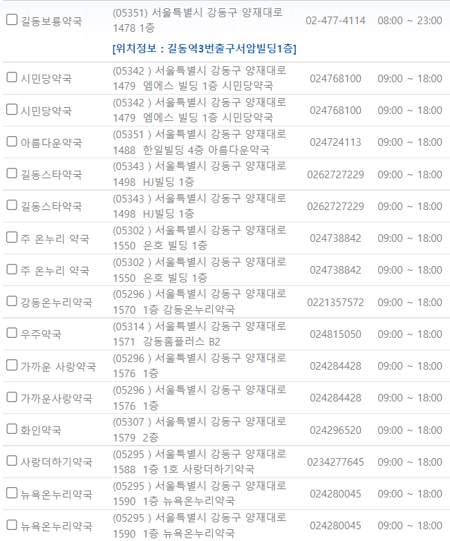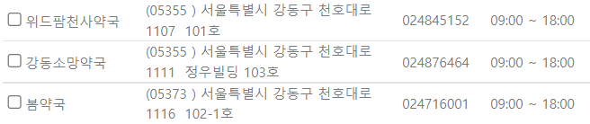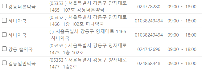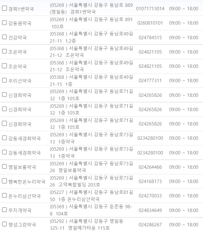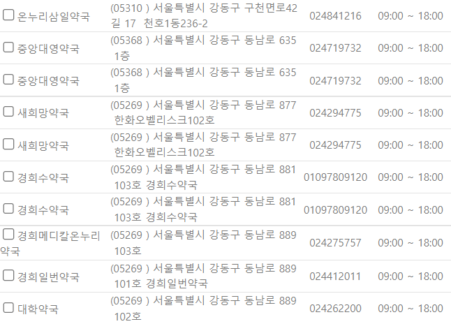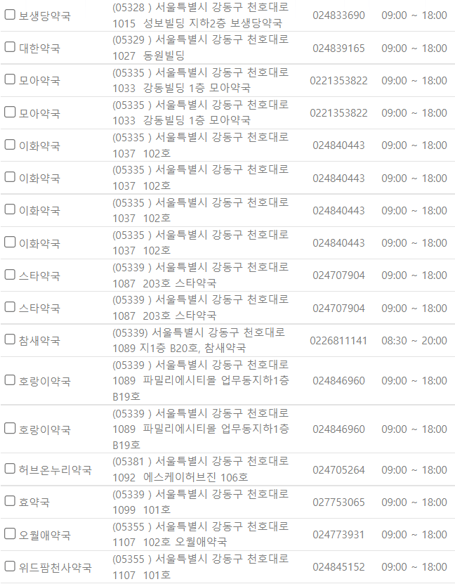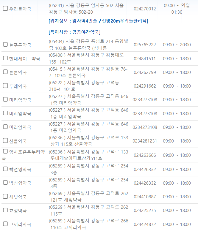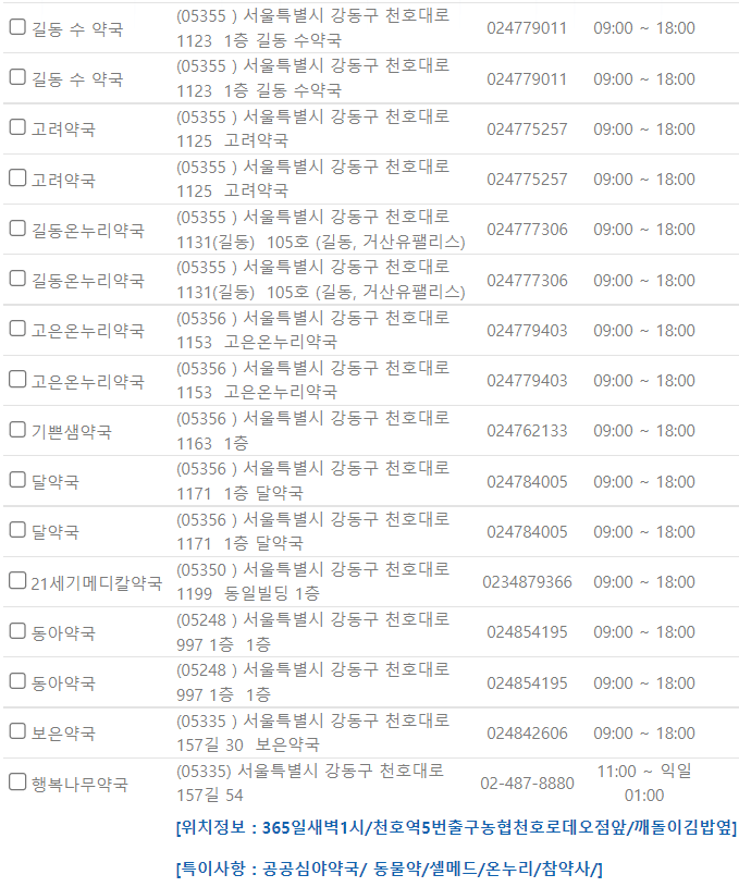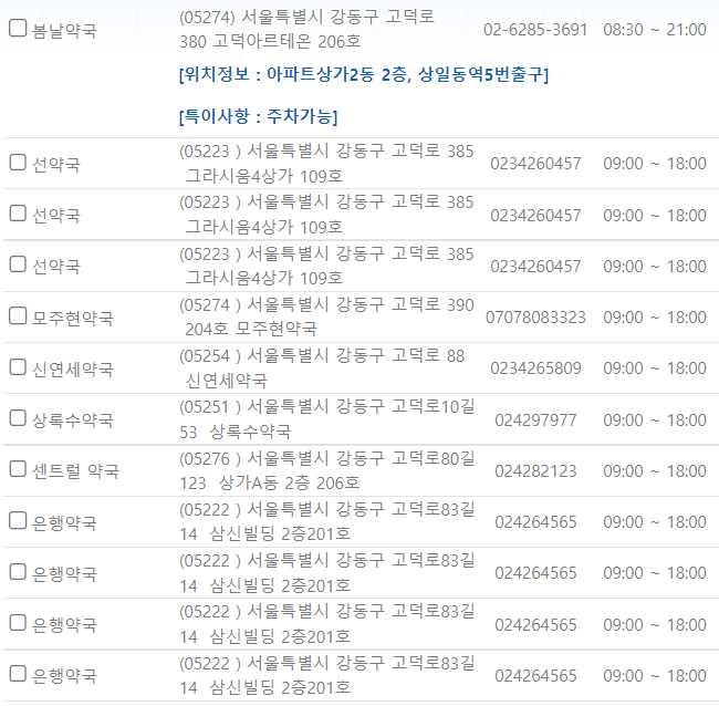 서울 강동구 지역 일요일 문을 연 약국을 찾기 어렵지 않으셨나요?
