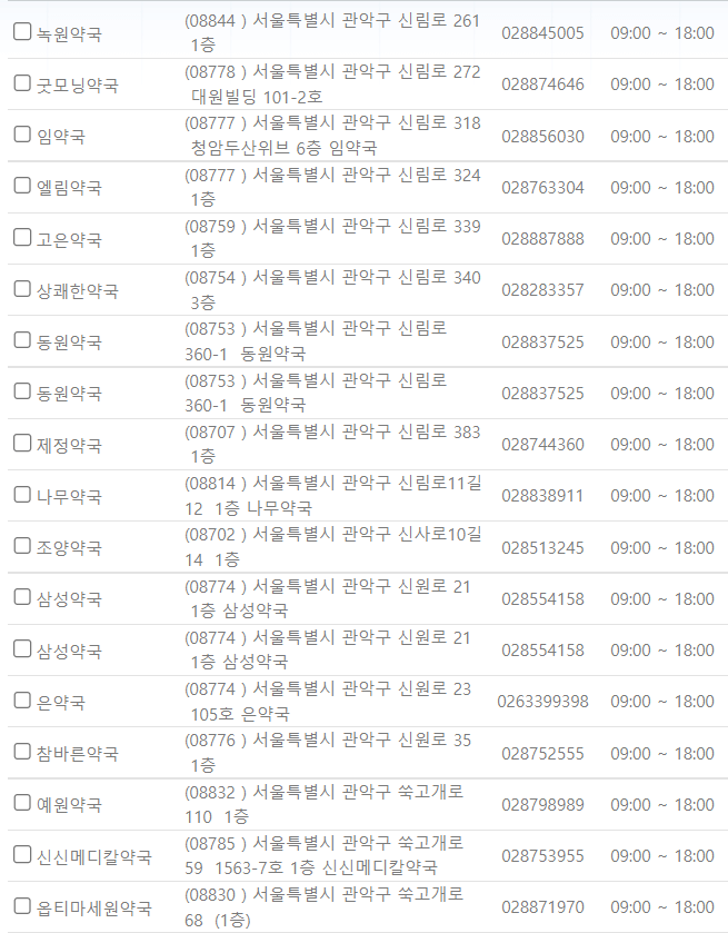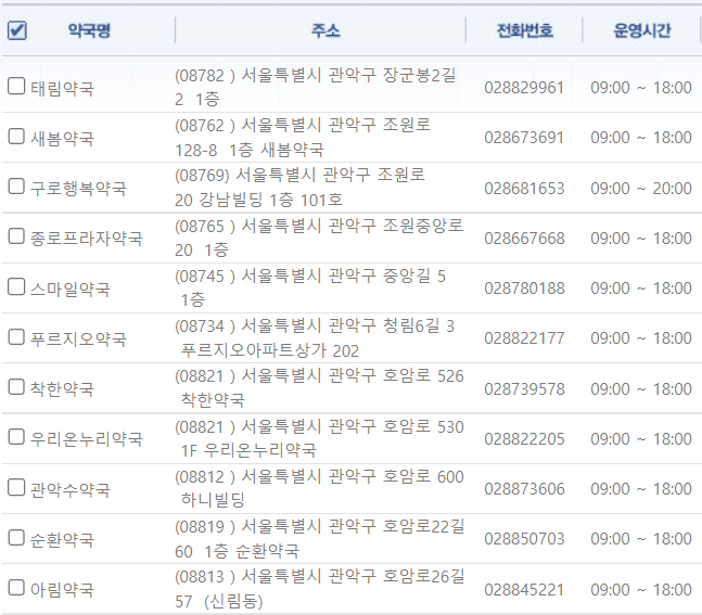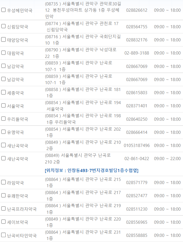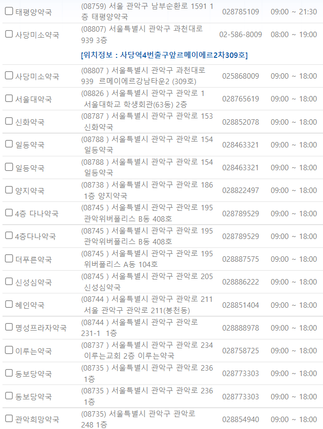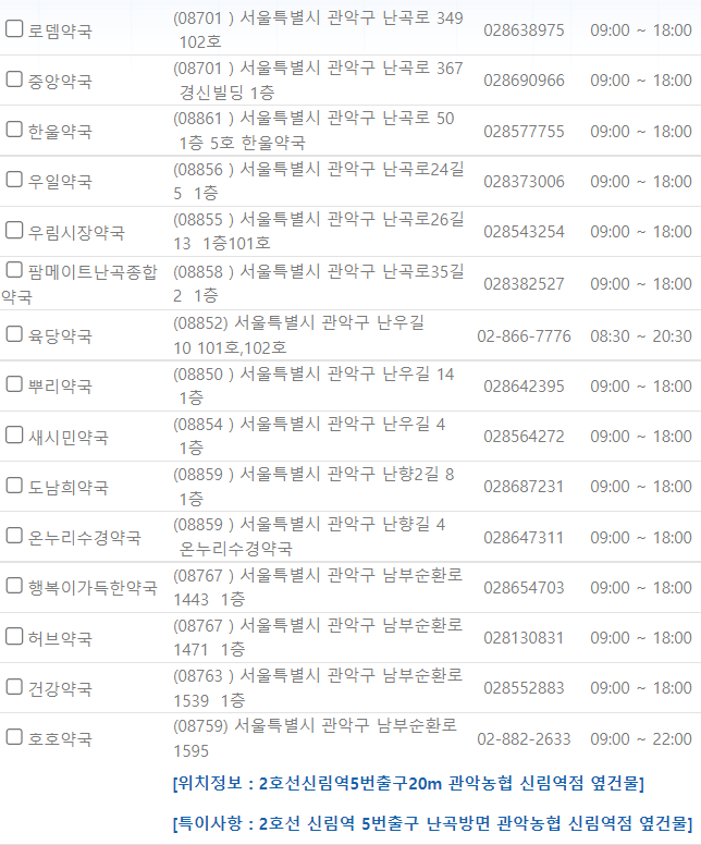서울 관악구 연중무휴 약국