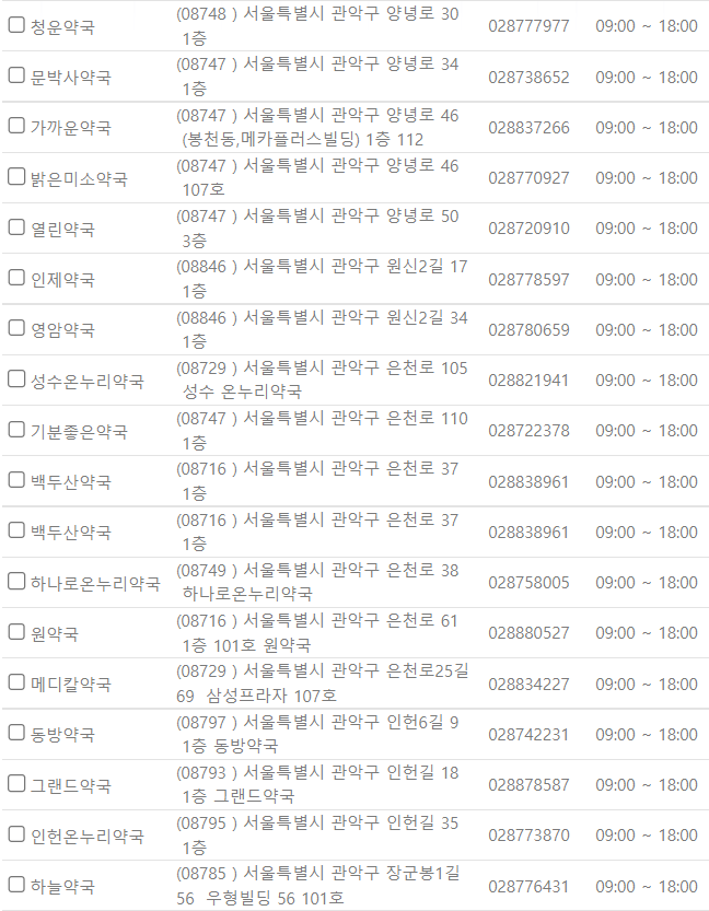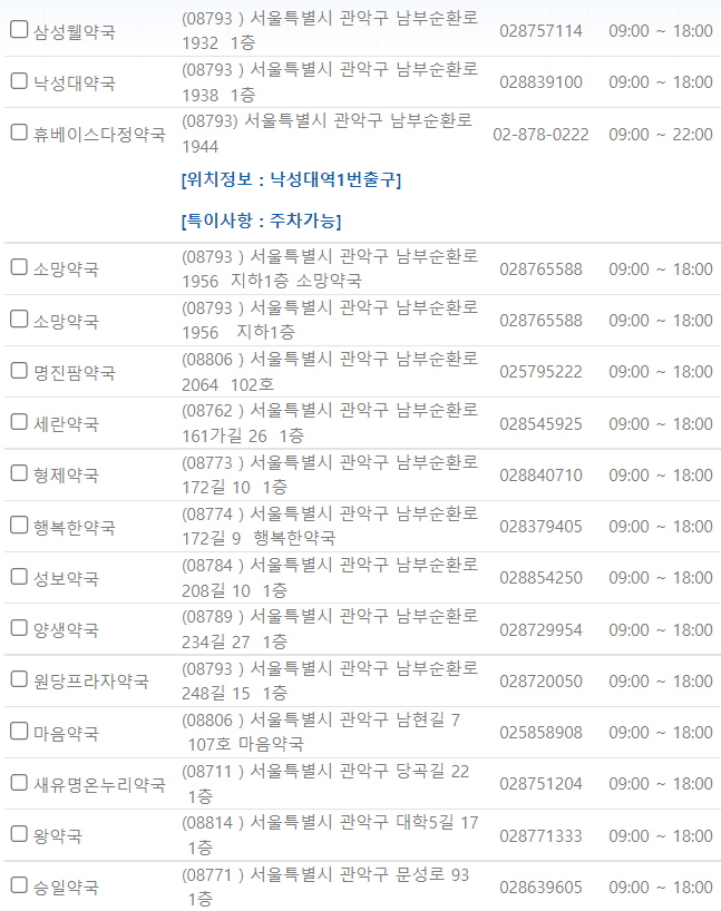 서울 관악구 지역 일요일 문을 연 약국을 찾기 어렵지 않으셨나요?