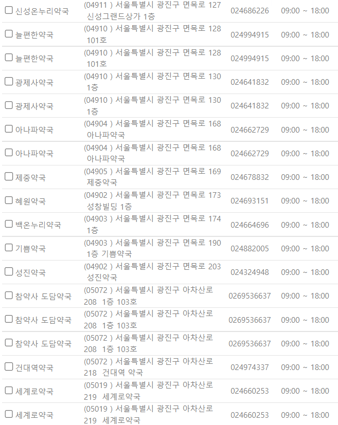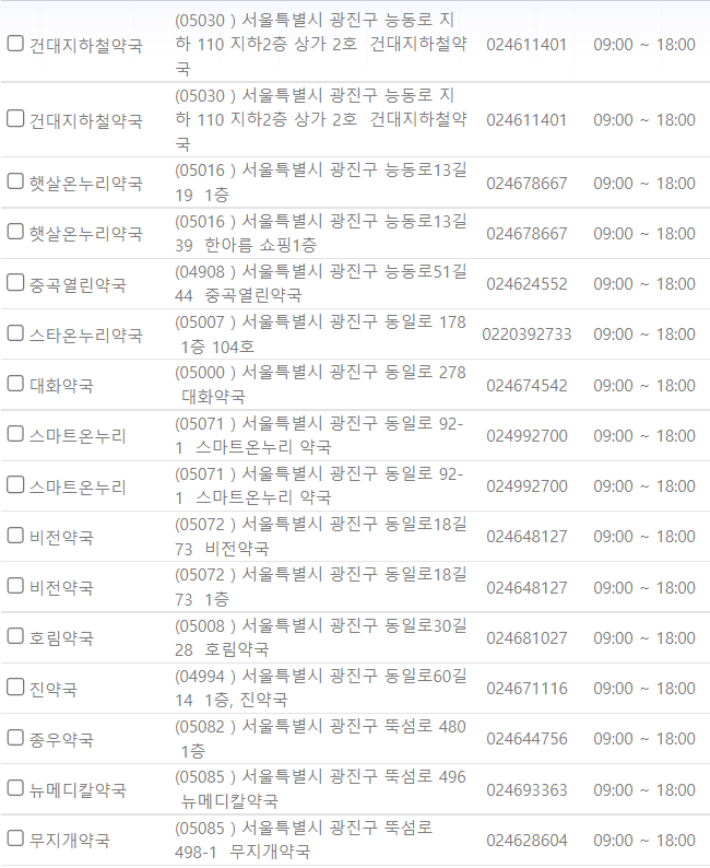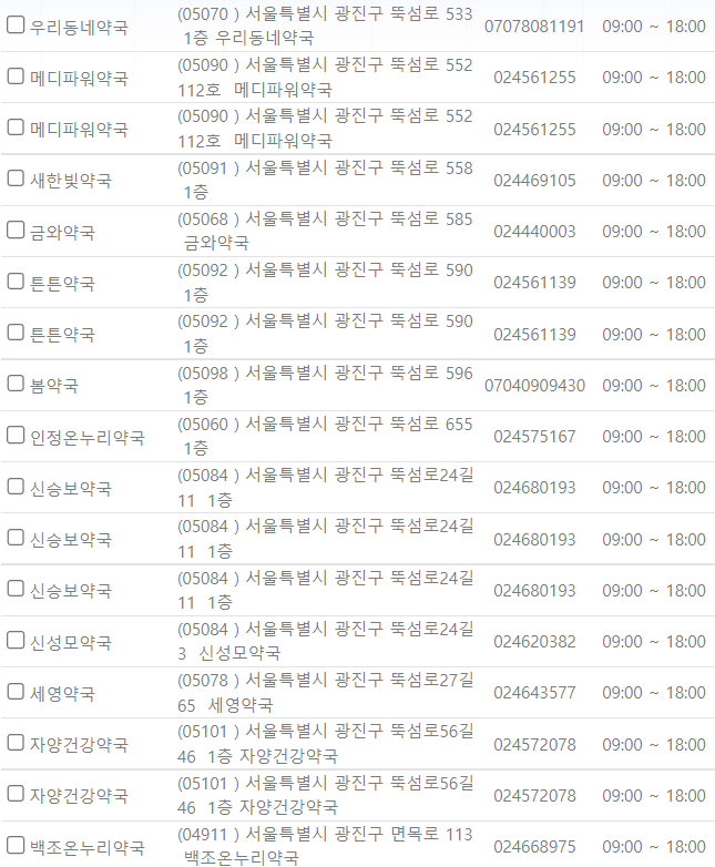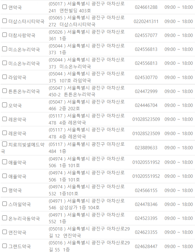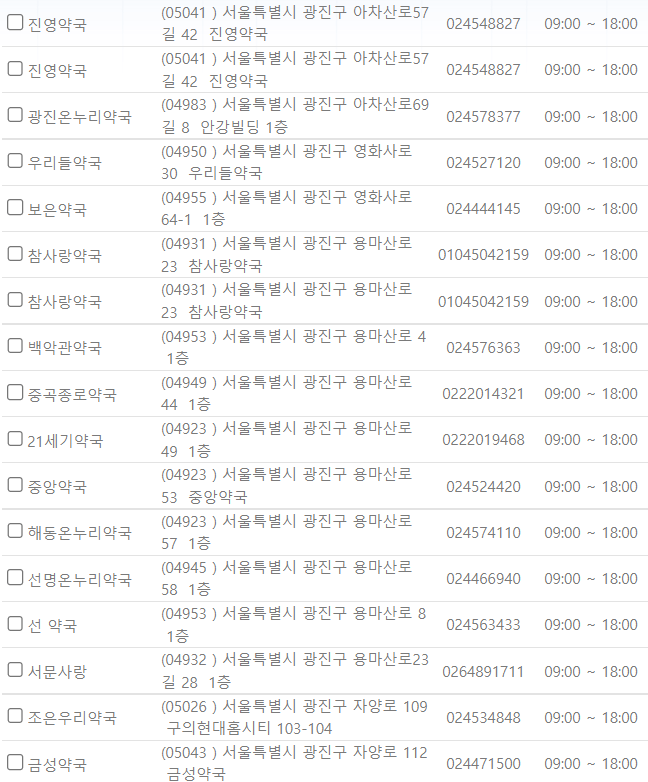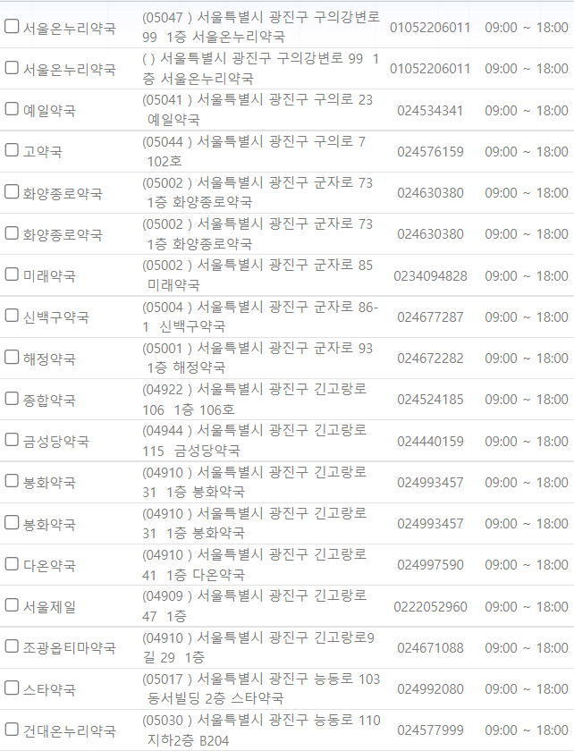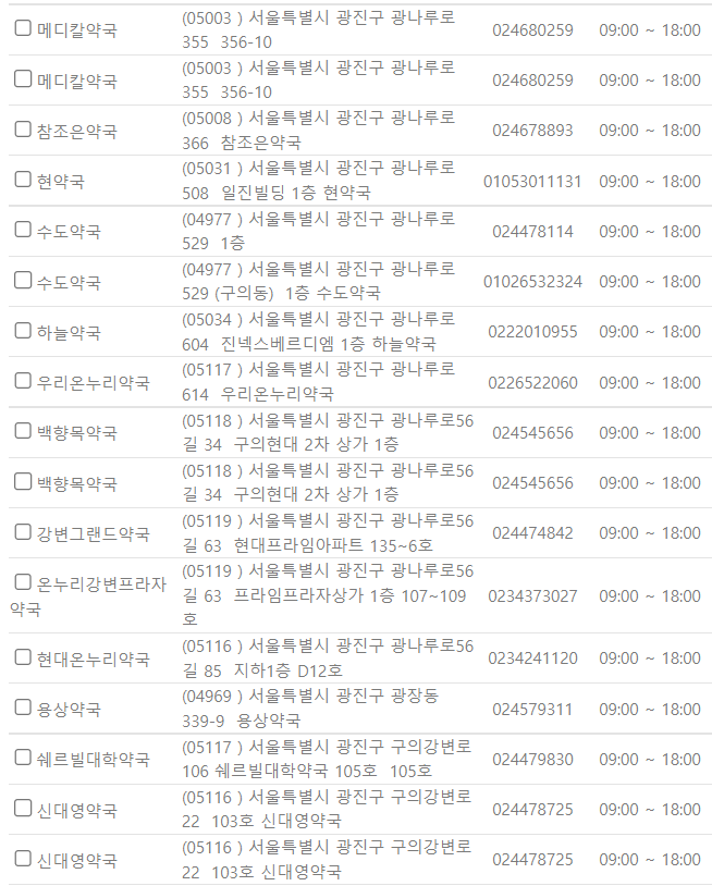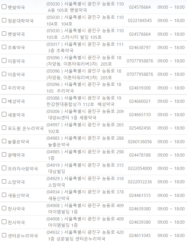 서울 광진구 지역 일요일 문을 연 약국을 찾기 어렵지 않으셨나요?
