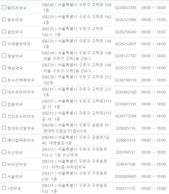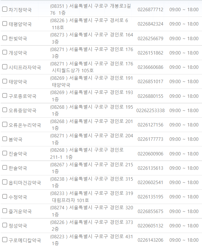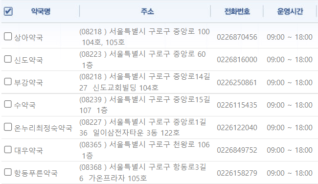 서울 구로구 지역 일요일 문을 연 약국을 찾기 어렵지 않으셨나요?