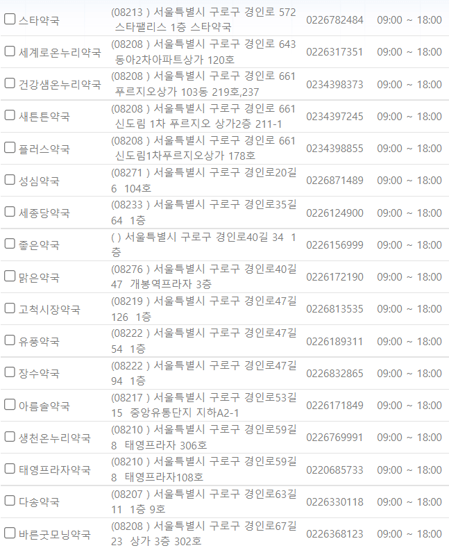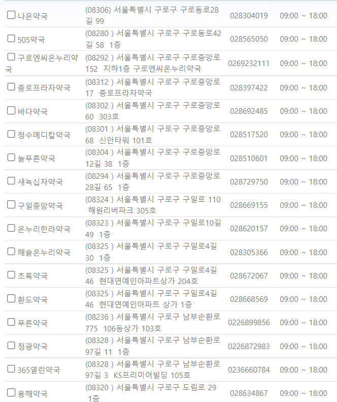 제가 미리 서울 구로구 일요일에 영업하는 약국을 찾아보았습니다. ⬇️아래 사진을⬇️ 참고해 주시기 바랍니다.