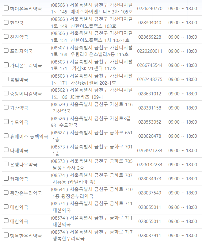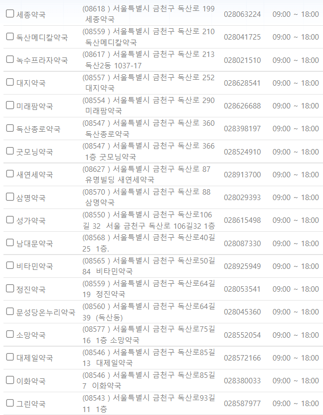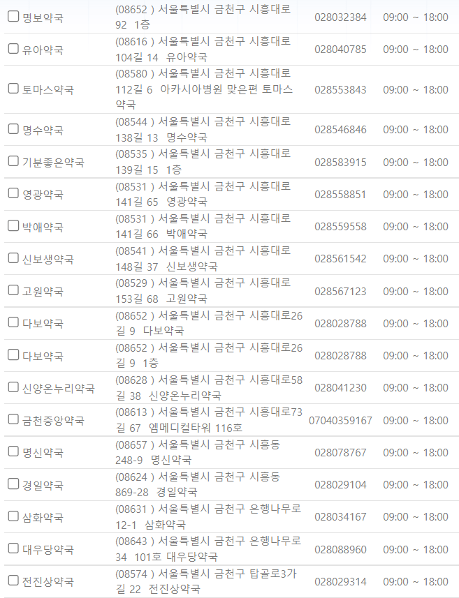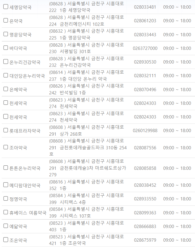 서울 금천구 지역 일요일 문을 연 약국을 찾기 어렵지 않으셨나요?