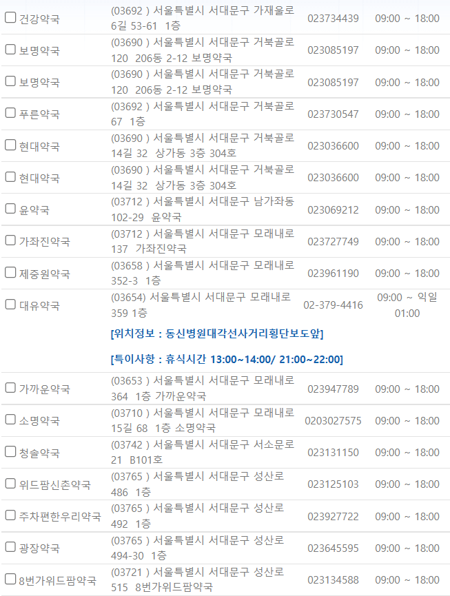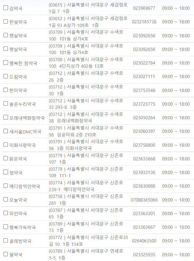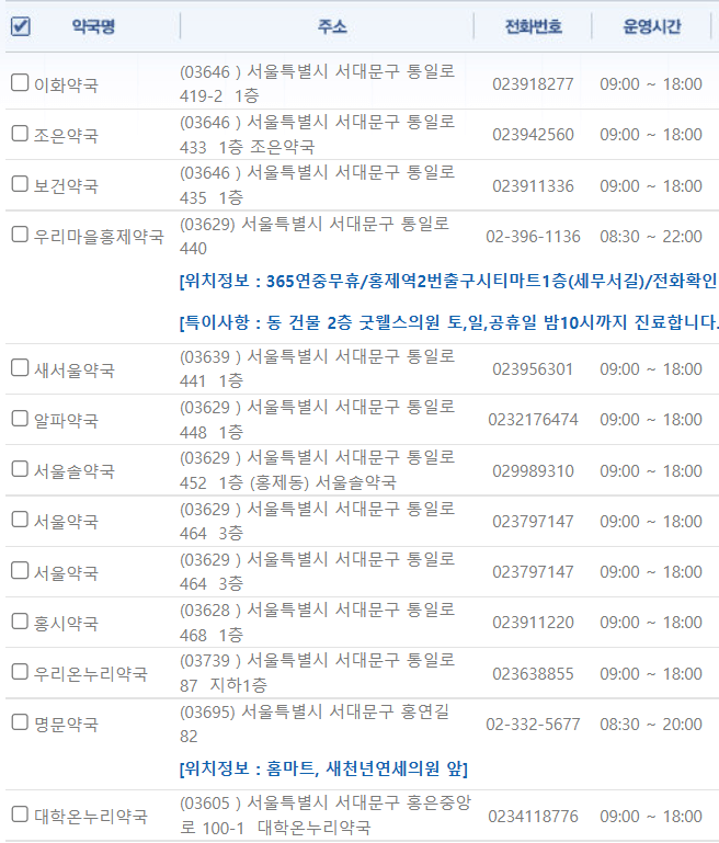 서울 서대문구 지역 일요일 문을 연 약국을 찾기 어렵지 않으셨나요?