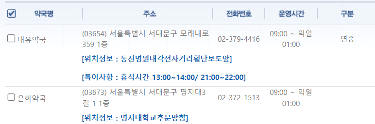 서울 서대문구 연중무휴 약국