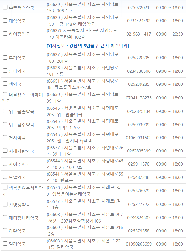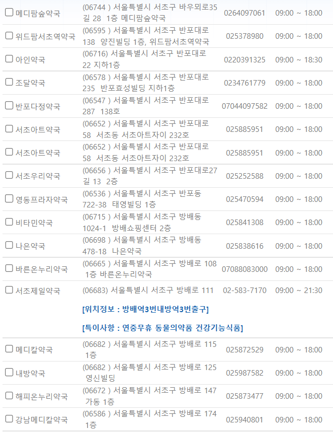 서울 서초구 지역 일요일 문을 연 약국을 찾기 어렵지 않으셨나요?