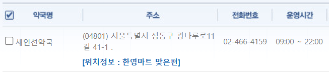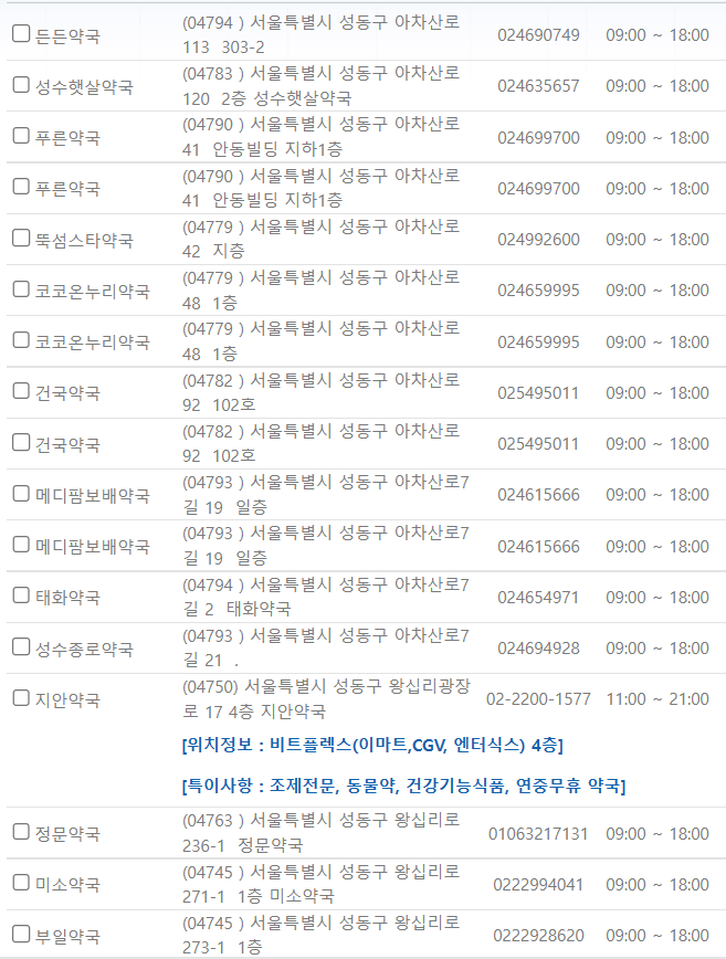 서울 성동구 지역 일요일 문을 연 약국을 찾기 어렵지 않으셨나요?
