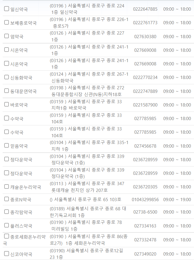 제가 미리 서울 종로구 일요일에 영업하는 약국을 찾아보았습니다. ⬇️아래 사진을⬇️ 참고해 주시기 바랍니다.