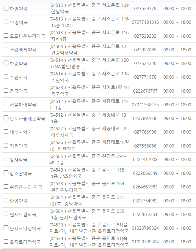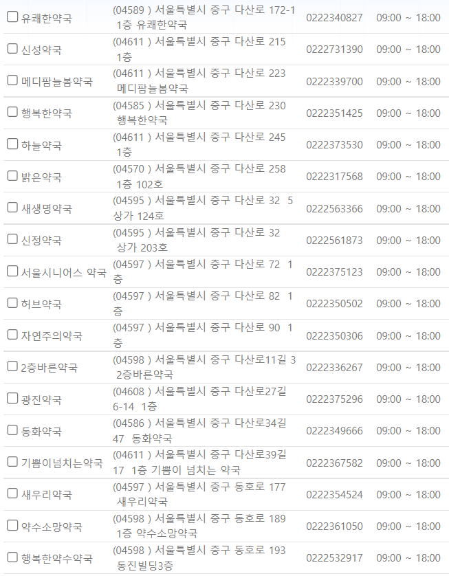 제가 미리 서울 중구 일요일에 영업하는 약국을 찾아보았습니다. ⬇️아래 사진을⬇️ 참고해 주시기 바랍니다.