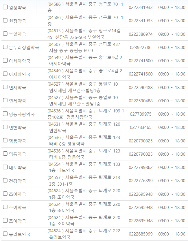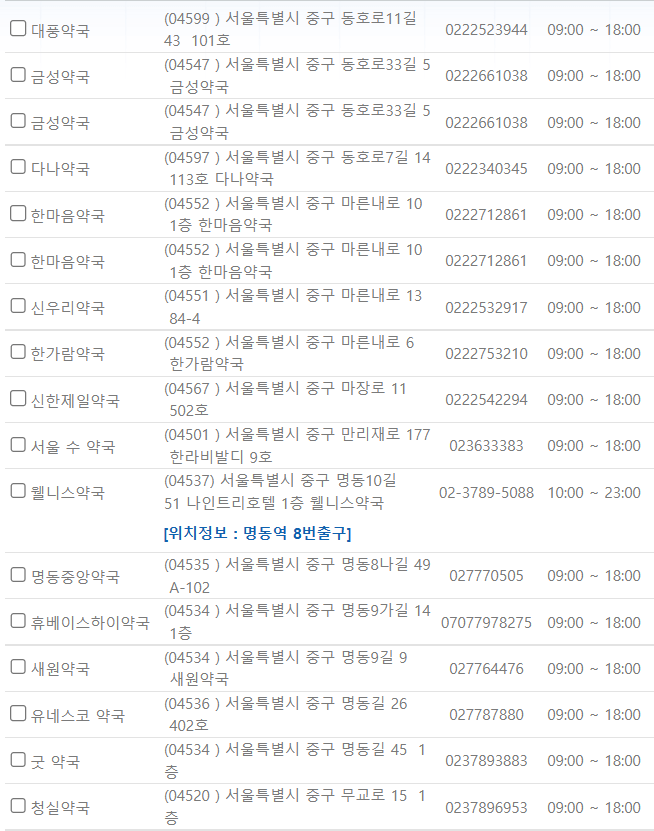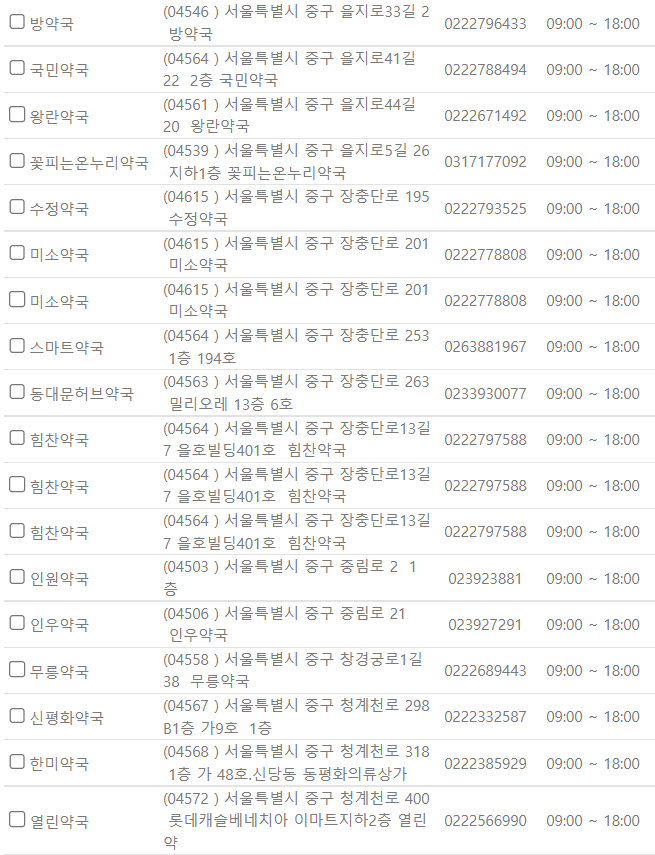 서울 중구 지역 일요일 문을 연 약국을 찾기 어렵지 않으셨나요?