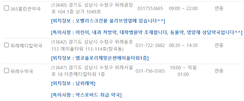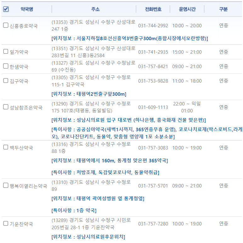 경기도 성남시 수정 지역 일요일 문을 연 약국을 찾기 어렵지 않으셨나요?