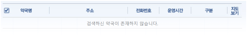| 약국명 | 주소 | 전화번호 | 운영시간 |