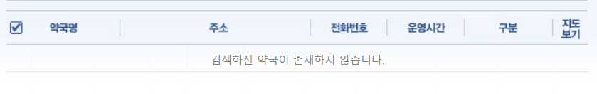 | 약국명 | 주소 | 전화번호 | 운영시간 |