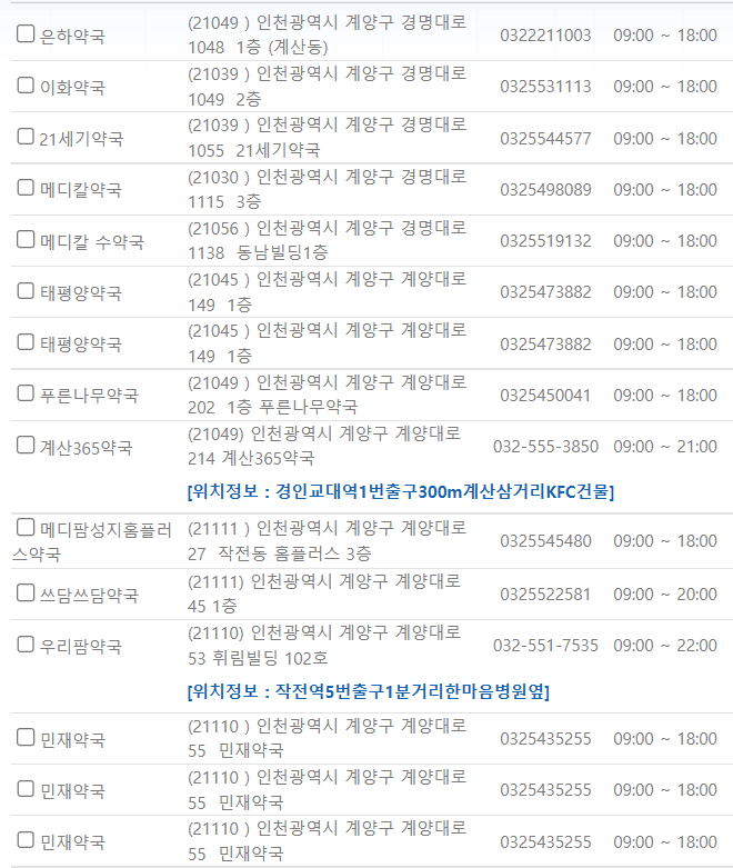 인천 계양구 연중무휴 약국