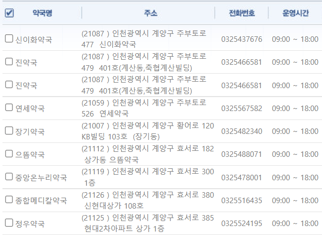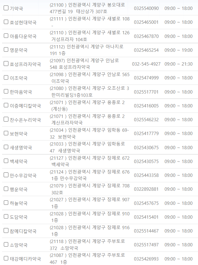 제가 미리 인천 계양구 일요일에 영업하는 약국을 찾아보았습니다. ⬇️아래 사진을⬇️ 참고해 주시기 바랍니다.