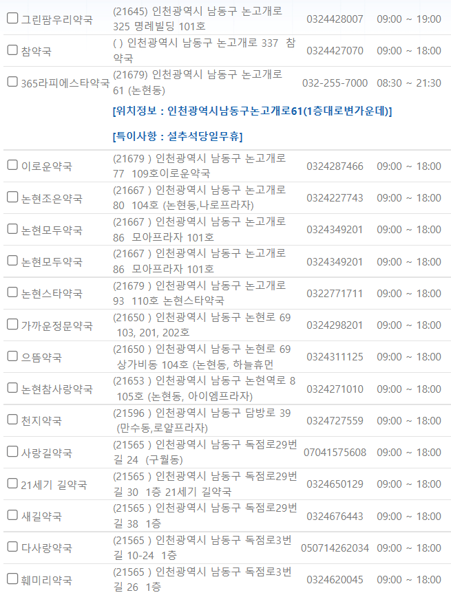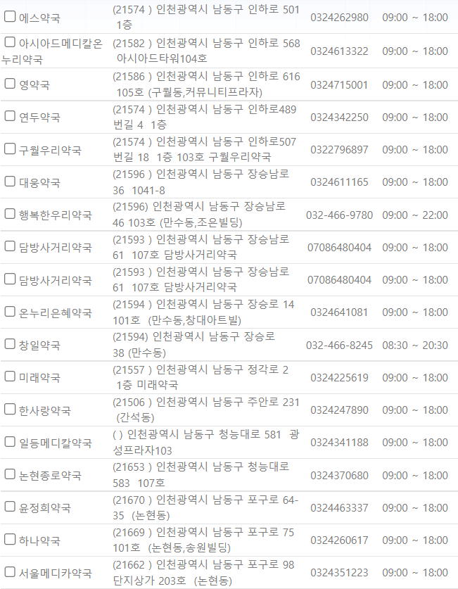 인천 남동구 지역 일요일 문을 연 약국을 찾기 어렵지 않으셨나요?