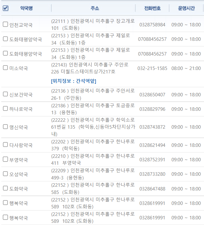 제가 미리 인천 미추홀구 일요일에 영업하는 약국을 찾아보았습니다. ⬇️아래 사진을⬇️ 참고해 주시기 바랍니다.