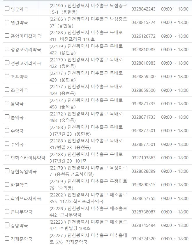 인천 미추홀구 지역 일요일 문을 연 약국을 찾기 어렵지 않으셨나요?