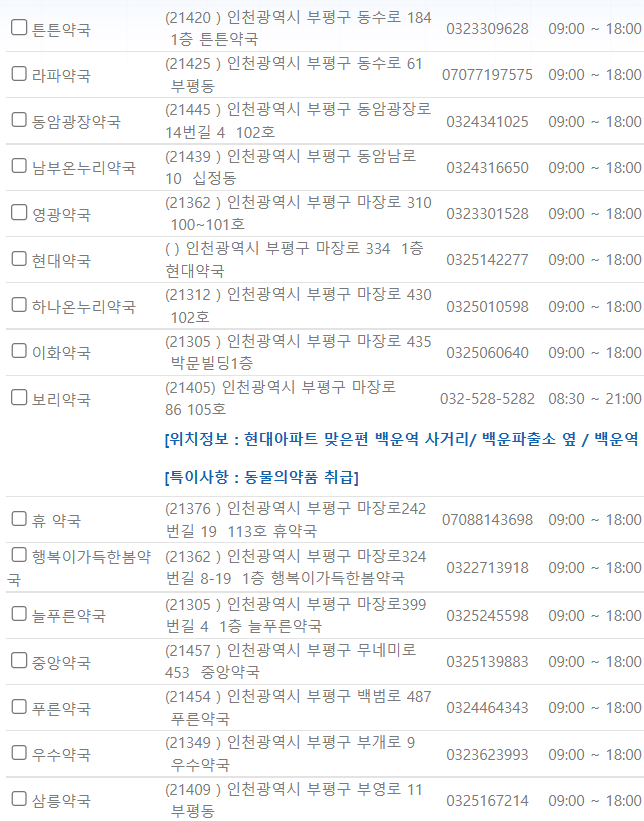 인천 부평구 지역 일요일 문을 연 약국을 찾기 어렵지 않으셨나요?