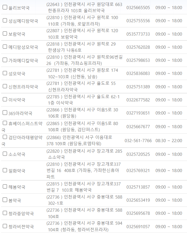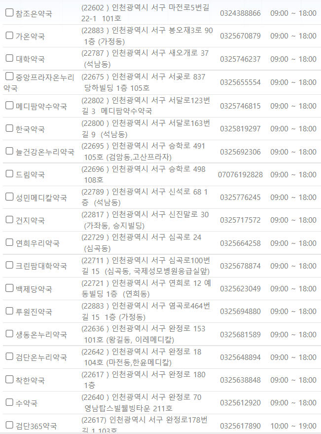 제가 미리 인천 서구 일요일에 영업하는 약국을 찾아보았습니다. ⬇️아래 사진을⬇️ 참고해 주시기 바랍니다.