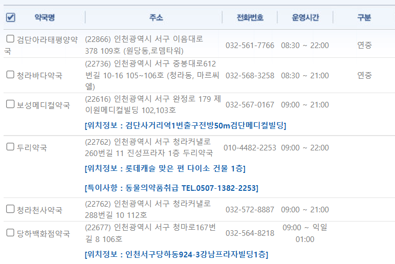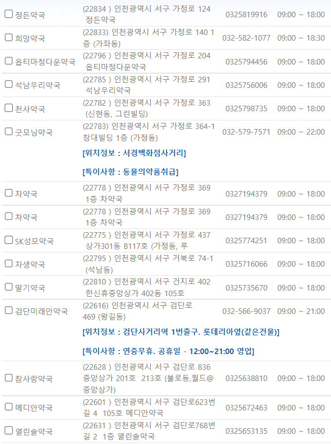 인천 서구 연중무휴 약국