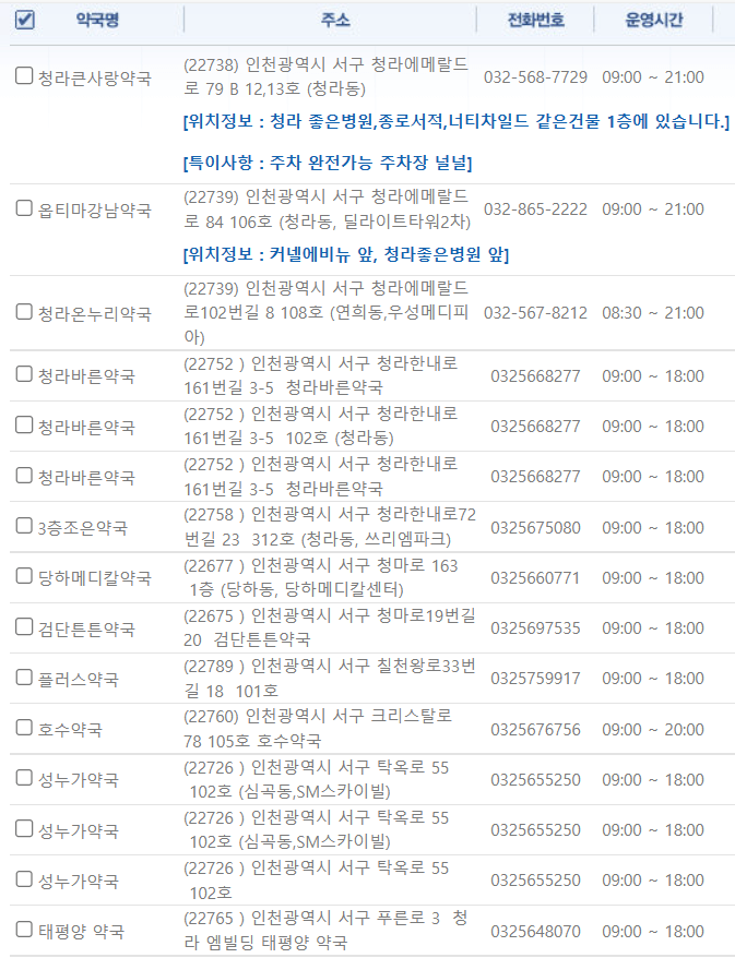 인천 서구 지역 일요일 문을 연 약국을 찾기 어렵지 않으셨나요?
