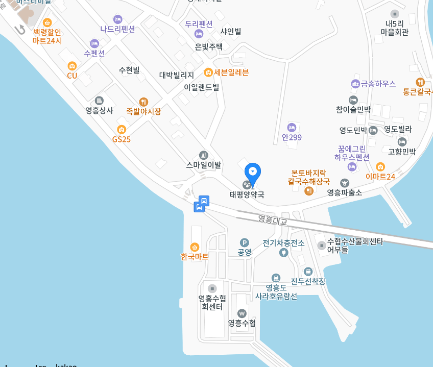 | 태평양약국 | 인천광역시 웅진군 영흥면 영흥북로11 | 032-285-8177 | 07:00 ~ 20:00 |