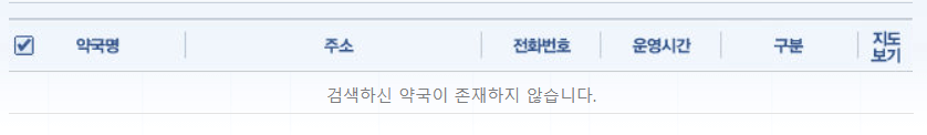 | 약국명 | 주소 | 전화번호 | 운영시간 |